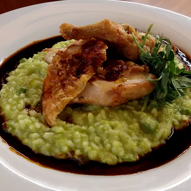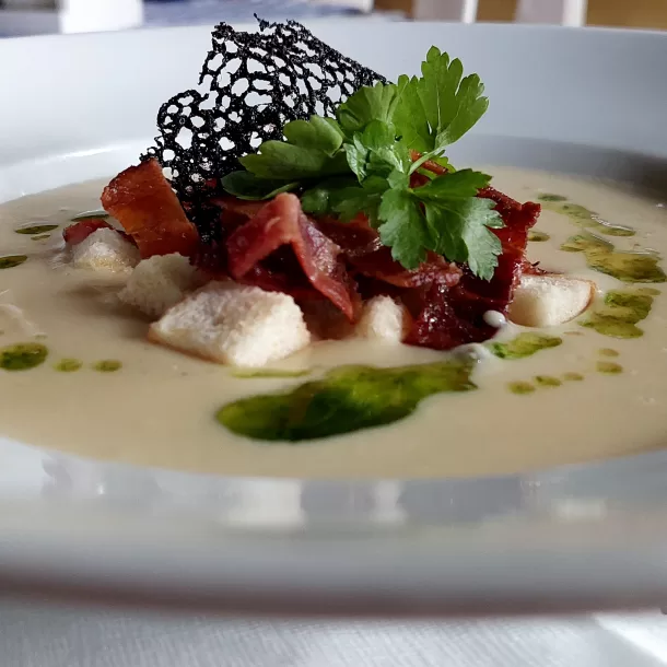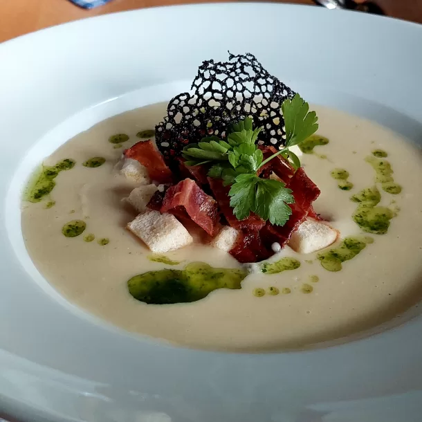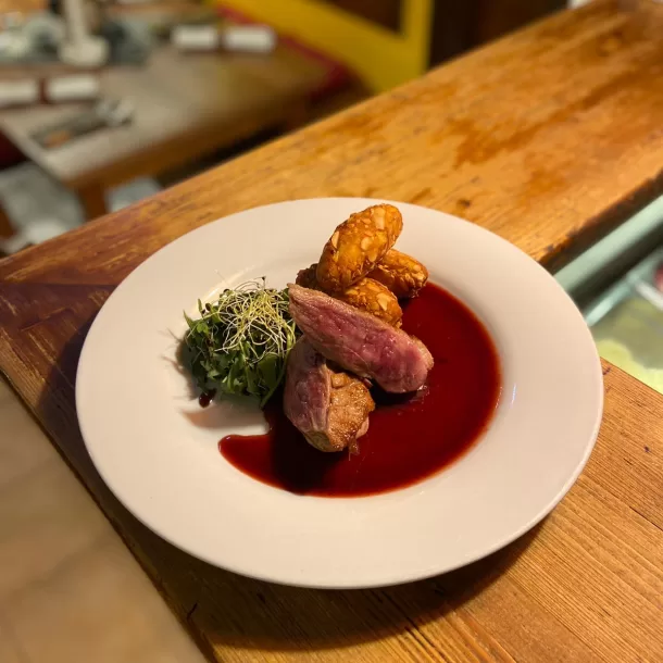 Nabízí všem zákazníkům příjemné prostředí s pohodlným interiérem s 35 místy a venkovní restauraci s krbem, která je zastřešena.